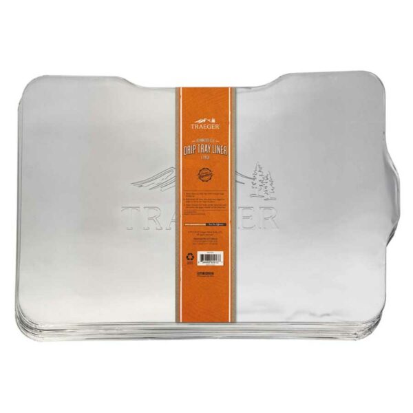 Pack de 5 plaques de récupération de graisse pour Traeger ironwood 650. Fabriquées en aluminium jetable. Dimensions : L50 P39 H0,3 cm.