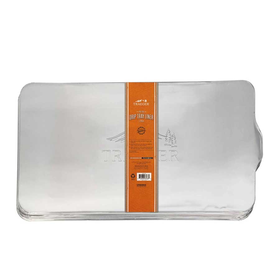 Pack de 5 plaques de récupération des graisses Traeger. Fabriquées en aluminium résistant à la chaleur. Légères et jetables pour un nettoyage rapide.