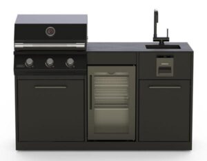 Le principe est simple : vous choisissez vos modules (plans de travail, rangements, supports) et vous les associez aux appareils de cuisson Brabura de votre choix — barbecue, plancha, four ou kamado. Chaque élément s’emboîte pour former une cuisine extérieure cohérente, que vous pouvez faire évoluer au fil du temps. Brabura propose d’ailleurs un configurateur en ligne pour visualiser et composer votre installation avant l’achat.