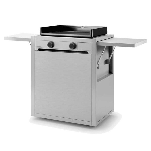 Idéal pour transporter votre plancha Modern 60, ce chariot en inox assure stabilité et confort lorsque vous cuisinez. 2 tablettes latérales pliables. Dimensions 75,2 (162,3 ouverte) x 57,3 x 98,7 cm. 4 roues pivotantes. Emplacement pour bouteille de gaz.