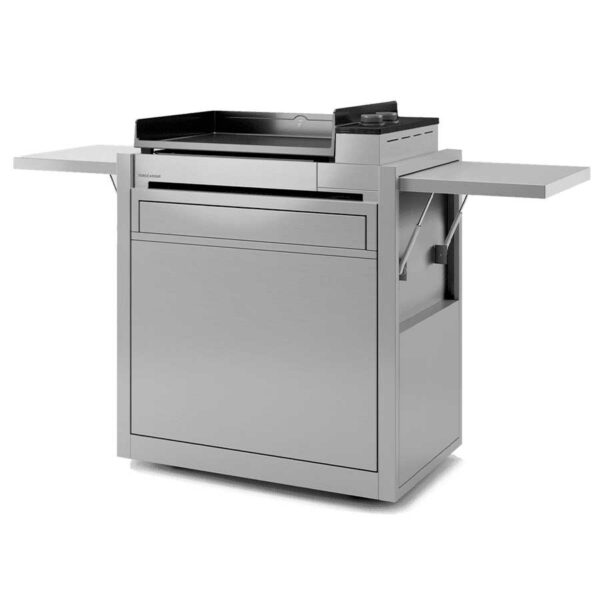 Cuisinez avec un confort maximum sur votre plancha Premium 60 grâce à ce chariot en inox équipé de 2 tablettes rabattables. Dispose de 4 roues dont 2 pivotantes et d’un rangement pour bouteille de gaz. Dimensions 87,5 (174,5 ouvert) x 55,6 x 104,2 cm. Poids 49,8 kg.