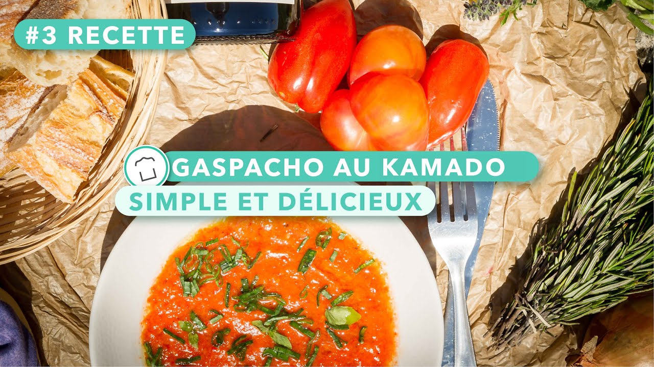 Coupez votre pastèque en quartier, coupez vos tomates en deux en enlevant le pédoncule puis découpez votre poivron afin d’enlever tout le cœur. Disposez vos légumes sur une plaque japonaise ou une plaque adaptée à votre barbecue kamado. Ensuite émincez votre oignon que vous garderez cru.