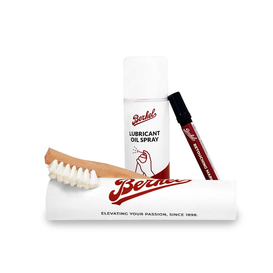 Conçu pour effectuer des retouches et recouvrir les ébréchures qui peuvent apparaître sur votre trancheuse, ce kit contient : 1 chiffon microfibre, 1 huile lubrifiante en spray 200 mL, une brosse de nettoyage de la lame, 1 feutre noir pour retouches, 1 boîte écodurable en papier. Utilisable sur trancheuse Volano et électriques.