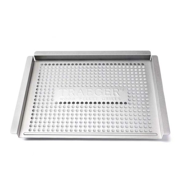 Panier de cuisson pour barbecue Traeger. Conçu en inox résistant à la chaleur. Idéal pour fumer et cuire tout type d’aliment. Dimensions : 40 x 29 x 3 cm.