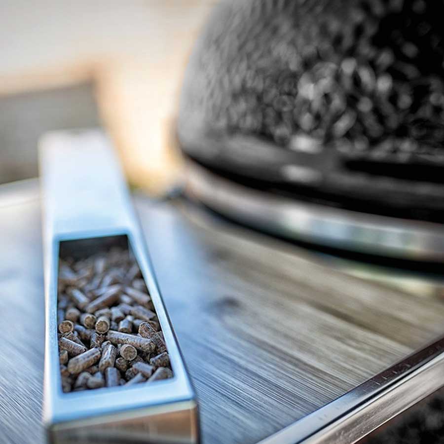 Ces pellets sont très simples d’utilisation et surtout très simple à nettoyer par la suite. Après avoir placé les pellets dans le bac prévu à cet effet, il faut glisser ce bac dans la trappe à l’avant du barbecue. Ensuite, vous pourrez verser les pellets dans le barbecue et le fumage peut commencer.
