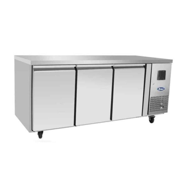 Notre tour de refroidissement Atosa 3 portes est la solution parfaite pour vos besoins de stockage. Avec une capacité de 350 litres, elle offre beaucoup d’espace pour tous vos aliments et boissons. Le volume utile de 285 litres vous permet de ranger tout ce dont vous avez besoin, tandis que les dimensions de la grille de 330 x 455 mm offrent un grand espace pour le chargement et le déchargement. Le poids maximum par grille est de 40 kg, vous pouvez donc être sûr que vos articles seront en sécurité. La puissance de 400W permet à ce meuble réfrigéré de diffuser un froid constant pour conserver au mieux tous vos aliments. La classe climatique est de 5 (jusqu’à 40°C), ce qui le rend idéal pour une utilisation dans divers environnements. Le gaz réfrigérant est le R290, qui est respectueux de l’environnement et ne contribue pas au réchauffement de la planète. La plage de température intérieure s’étend de -2°C à +8°C, vous pouvez donc être sûr que vos articles seront conservés à la température idéale. Pourquoi ajouter un dosseret à une tour réfrigérée ? L’option dosseret vous permet de stocker votre table réfrigérée contre un mur et de vous faciliter l’entretien lors du nettoyage. Les résidus sont bloqués par le dosseret. Cependant en version sans dosseret vous pourrez plus facilement la stocker en tant qu’îlot central de votre cuisine et accéder à votre plan de travail de n’importe quels côtés. Entretien rapide et simple Les joints de portes sont magnétiques. Faciles à nettoyer et démontables sans outils. Les angles intérieurs sont arrondis ce qui facilite le nettoyage. Et le dégivrage est automatique.