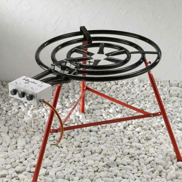Compatible avec les réchauds à paella 40, 60 et 70 cm, ce trépied renforcé vous garantira une utilisation confortable et stable de votre réchaud. Hauteur 70 cm. Poids 2,9 kg.